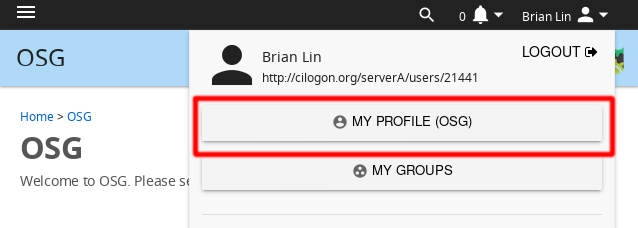 Click your name at the top right. In the dropdown box, click "My Profile (OSG)" button.