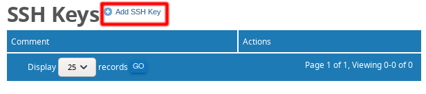 On the new SSH Keys page, click "Add SSH Key" and browse your computer to upload your public SSH key. The expected key is a single line, with three fields looking something like